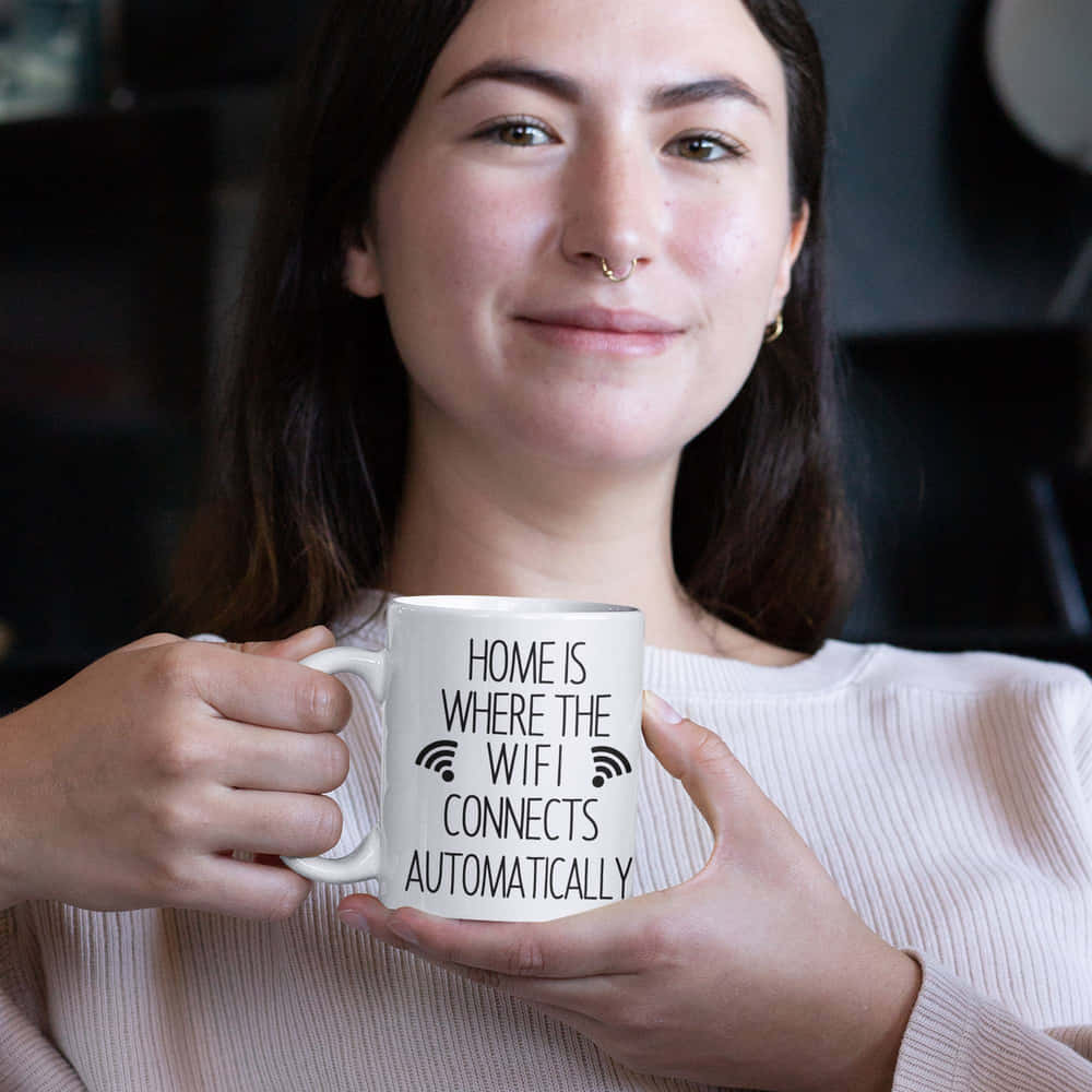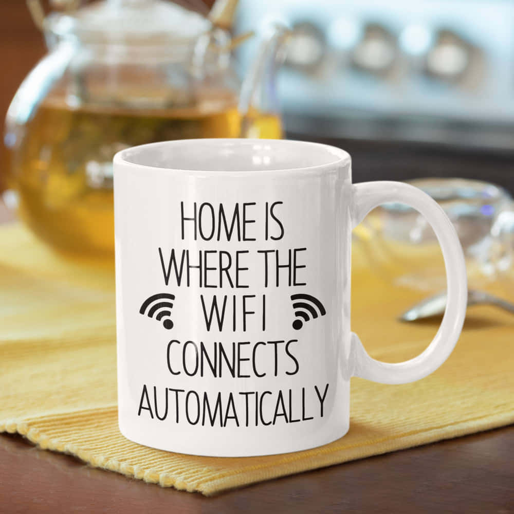 We would like to thank you for taking the time to look at our funny Home Is Where The WiFi Connects Automatically gift mug.