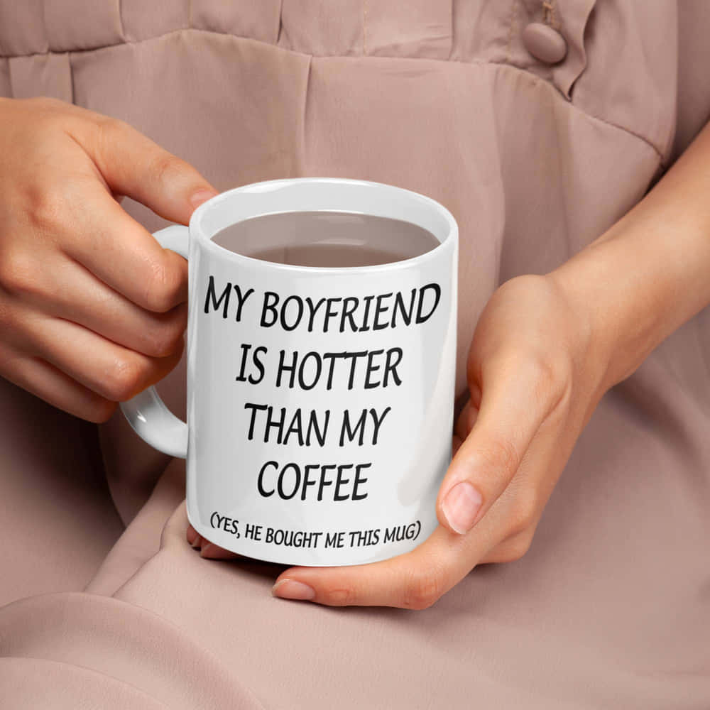 The full text reads ‘My Boyfriend Is Hotter Than My Coffee. (yes she bought me this mug)’