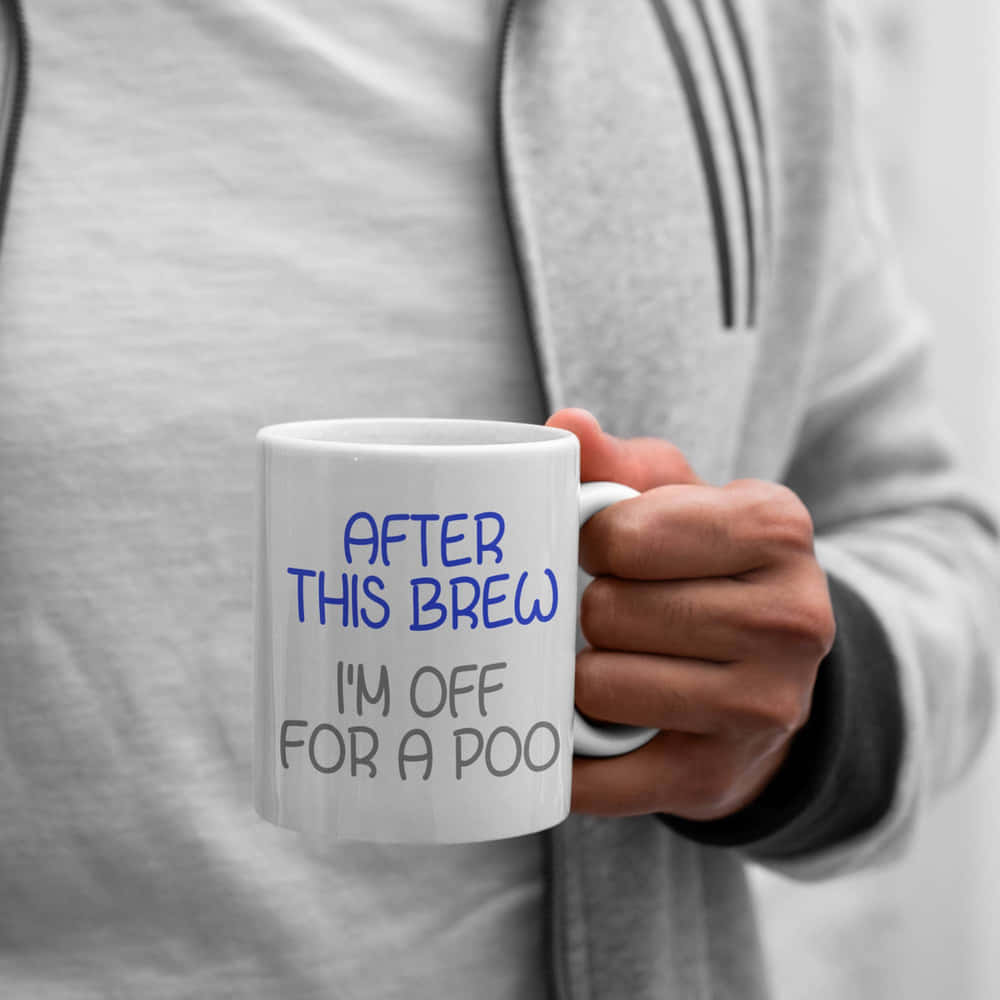 The text says After this Brew, I’m Off For A Poo and is printed on both sides of the mug so works for left or right handed people.